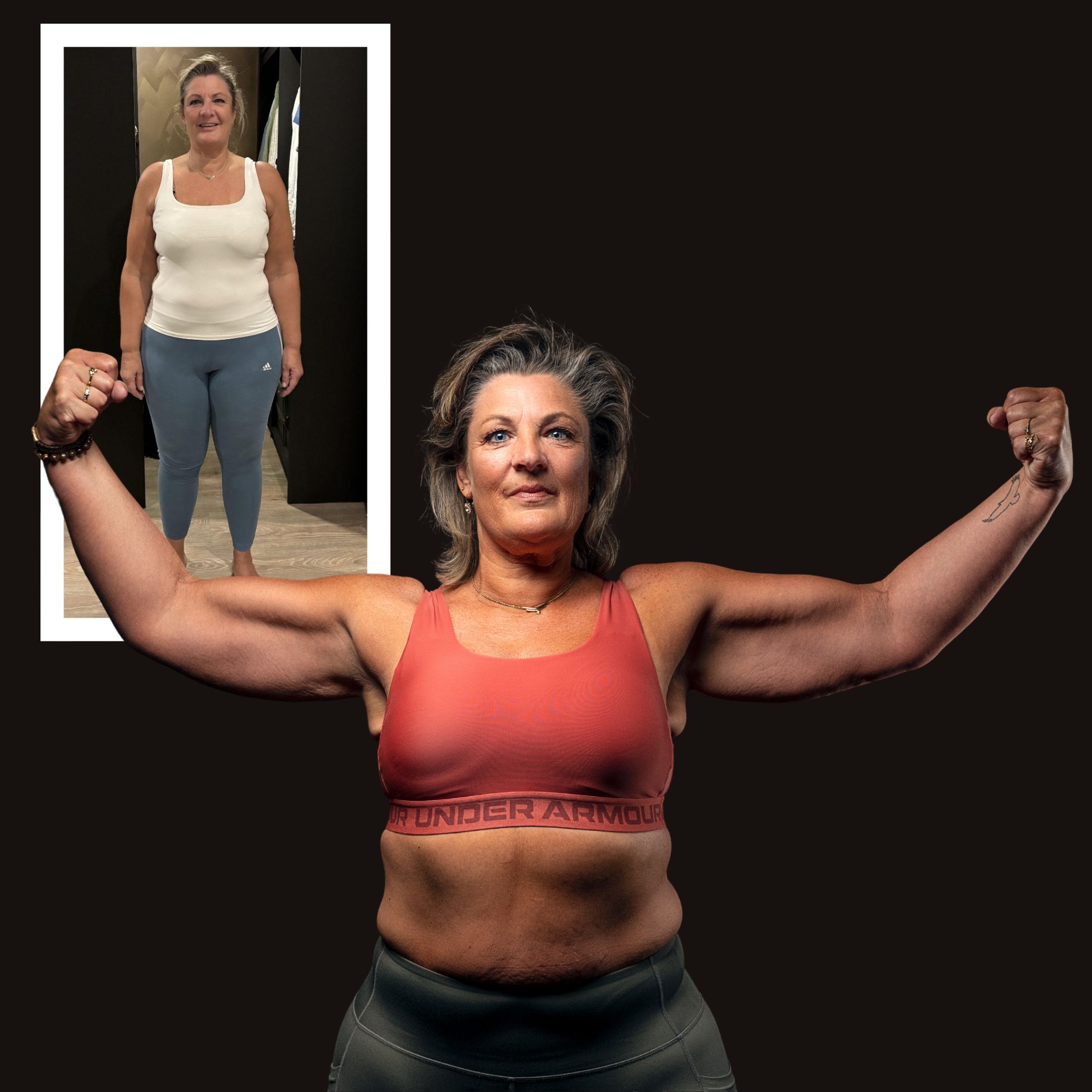8 kilo vet kwijt, meer spiermassa opgebouwd en belangrijker nog: ze straalt weer van binnen én van buiten. Ze voelt zich fitter, sterker en gelukkiger dan ooit. En dat allemaal zónder haar sociale leven op te geven. Etentjes bleven, onregelmatige werktijden ook maar met de juiste structuur en coaching vond ze eindelijk de balans. “Geen quick fixes, maar een aanpak die écht werkt.”